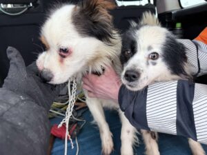 Šeimininkui išvykus, du jo šuneliai – porelė (balta su juodu Meilė, ~2020 m. gimimo) – glaudžiasi pas mus, tel. 067612231