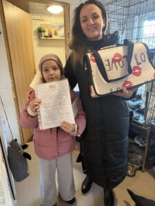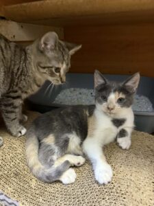 Mažyliai – juodai baltas Rio, rainas su baltu Rojus, ryški trispalvė Rauzė, šviesi trisplavė Žaklina, raina Anika, trispalvė Anima.