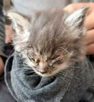 Žiema artėja, o kačiukai vis dar nesibaigia … Ir štai dar vienas mažylis, rastas Kairiuose, tokios būklės, kad širdį suspaudžia – silpnas, visiškai užpuliavusiomis akytėmis, suvargęs..