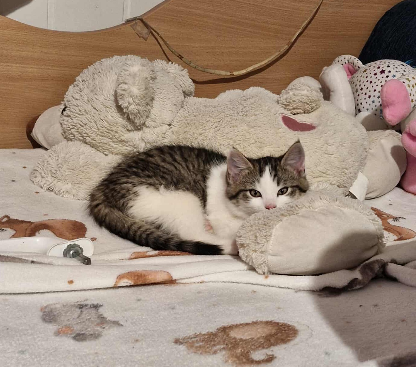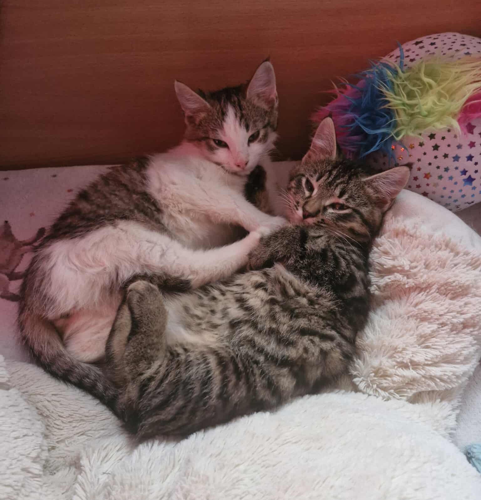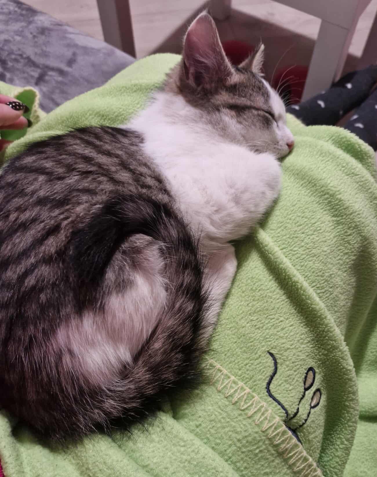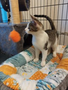 🐾 Pandukas – baltas su rainais lopeliais. Tikra energijos bomba – labai žaismingas ir aktyvus. Tačiau šiuo metu dar labai nedrąsus, bijo prisilietimų ir gindamasis šnypščia, bet jam labai patinka užsilipti antkojų ir stebėti žmogų. Reikia tokio žmogaus, kuris skirs kantrybės ir laiko, kad jis patikėtų ir atsiskleistų. Kai įveiks baimę, tikrai taps nuostabiu draugu.