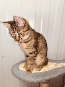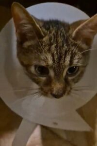 Į Raupaičius, Šiaulių r. atklydo štai tokia meili kačiukė.. su nulūžusia uodegyte, kurią teko veterinarui galutinai pašalinti, tel. 067612231